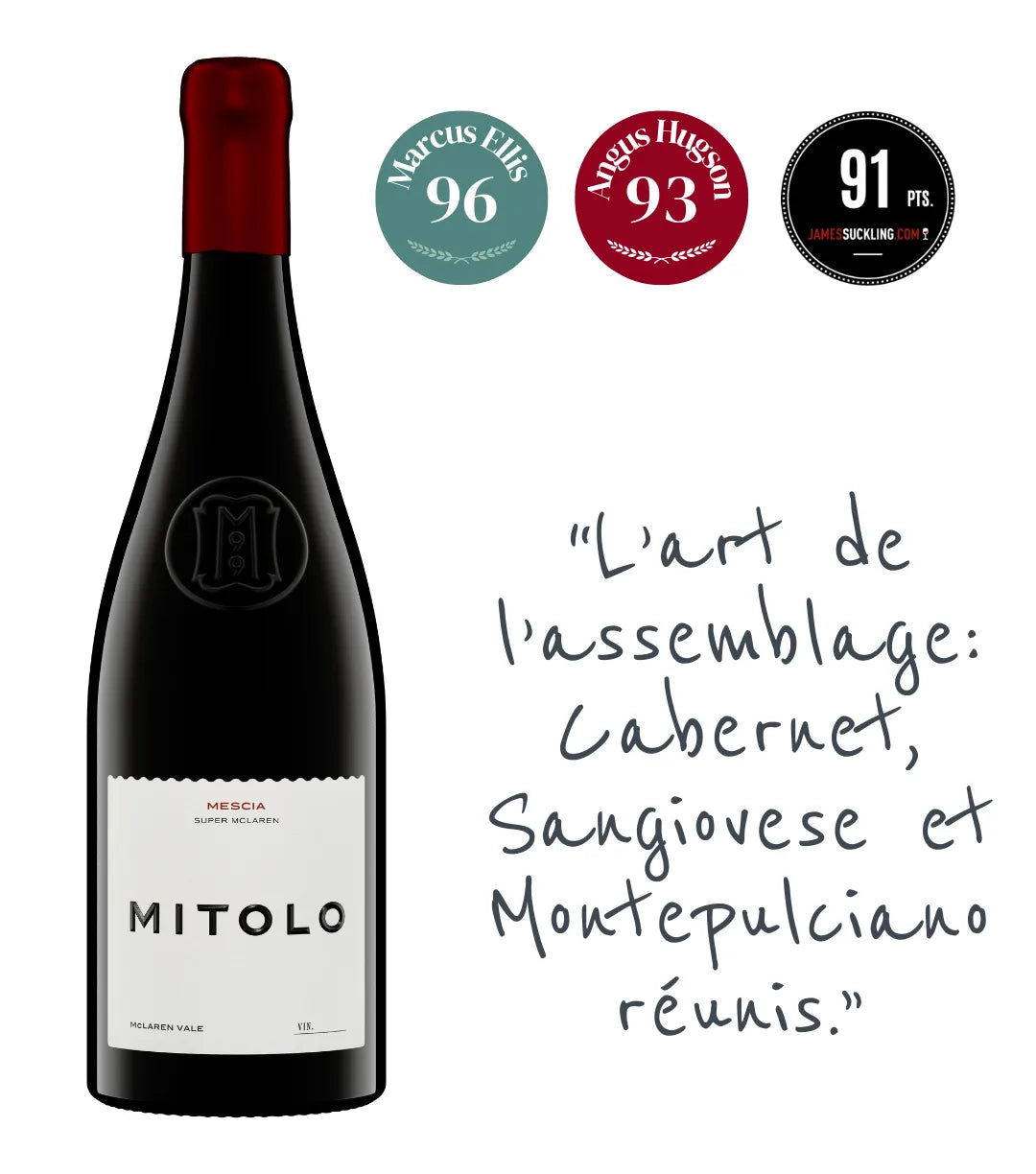 - Shiraz 2020 : intense et velouté, typique du style McLaren Vale.